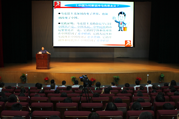 6月25日,校区学生活动中心举行“学习新思想,千万师生同上一堂课活动”宣讲报告会(安吉校区专场)。浙江省“学习新思想 千万师生同上一堂课活动”讲师团成员、浙江理工大学马克思主义学院院长渠长根教授应邀作题为《坚持不懈学习、实践马克思主义》主题报告。