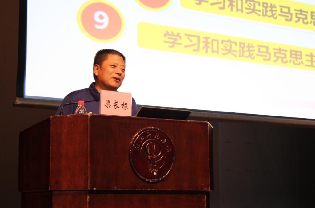 渠长根结合习近平总书记在北京大学师生座谈会和纪念马克思诞辰200周年大会上的重要讲话精神,从为何要坚持马克思主义、怎样坚持和发展马克思主义、如何重点学习和实践马克思主义三方面进行了详实的讲解,鼓励我校师生要做马克思主义的继承者、捍卫者和创新者。他表示,之所以要坚持马克思主义,是因为马克思主义深刻改变了世界,也深刻改变了中国。实践证明,马克思主义的命运早已同中国共产党、中国人民、中华民族的命运紧紧连在一起,它的科学性和真理性在中国得到了充分检验,它的人民性和实践性在中国得到了充分贯彻,它的开放性和时代性在中国得到了充分彰显。