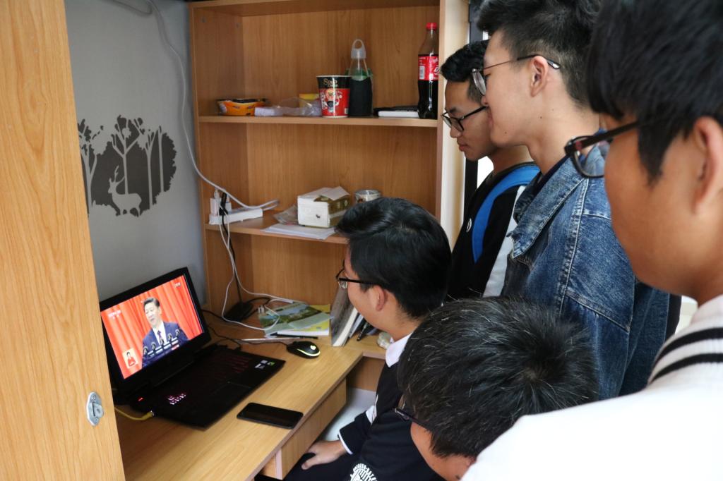 校区党工委、团工委还将组织广大师生、各党支部、各团支部、各群团组织持续通过电视、网络等多种渠道,收看收听十九大相关专题报道,深入学习十九大会议精神。广大师生将坚持与党中央保持思想上政治上行动上的高度统一,凝心聚力,开拓创新,以实际行动和工作业绩,大力推进校区改革发展,为实现我校“大学梦”贡献力量。