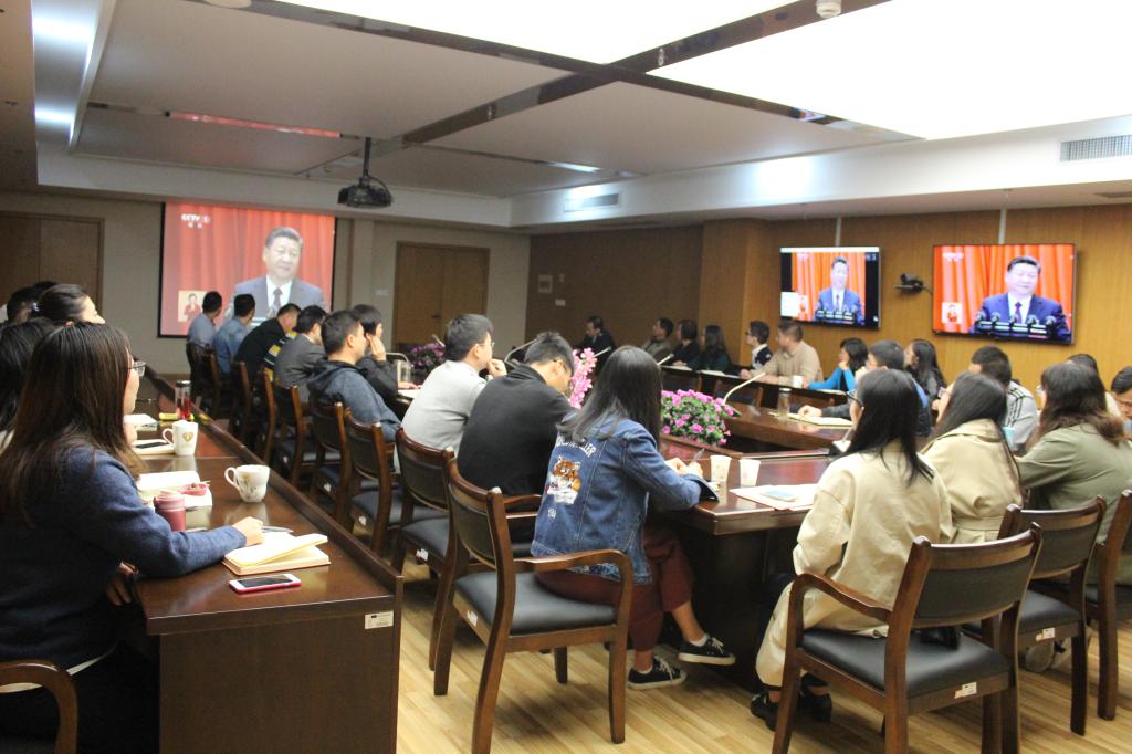 10月18日上午,中国共产党第十九次全国代表大会在北京隆重开幕。安吉校区党工委组织校区师生分别在行政楼211会议室和大学生活动中心集中收看十九大开幕式电视直播,聆听习近平总书记所作的报告。