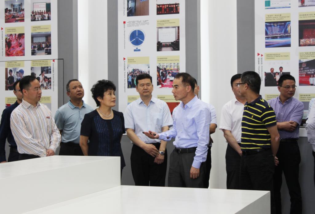 林蕙青一行参观了校史馆、实地考察了校区书院制建设。叶高翔受龚建立书记的委托,代表学校汇报了学校发展的基本情况及办学特色,重点汇报了中德工程师学院合作办学项目、书院制建设、诚信教育等情况。林蕙青特别关心学校人才培养及学校招生情况,详细了解安吉校区的教育教学改革,并走进学生寝室,与学生亲切交流。