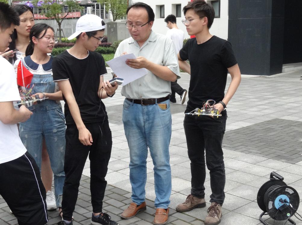 6月8日,bt365哪个是真的第四届新生电子制作大赛在银杏广场圆满落幕,活动由智能车队负责人孙勇智老师以及队长马圣斌担任评委。